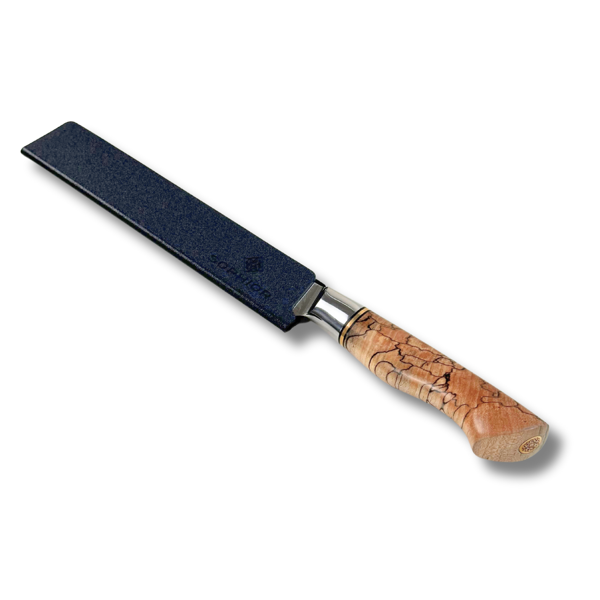 Elk mes in de Performance Collection is gemaakt van 73 lagen damaststaal, met een kern van S35VN poederstaal. Dit zorgt voor een indrukwekkende hardheid van 62 HRC en behoudt langdurig zijn scherpte. Het gehamerde lemmet vermindert wrijving en voorkomt dat voedsel blijft plakken tijdens het snijden.
