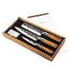 Dit 3-delige messenset Olive van Forged is een lust voor het oog. Het scherpe lemmet van RVS leveren we vlijmscherp aan. Dit Japanse mes is met de hand gesmeed, gevormd, gehard, geslepen, gepolijst, schoongemaakt en zorgvuldig verpakt. De hamerslagen op het mes zorgen voor een unieke uitstraling – geen enkel mes is hetzelfde. Ook heeft het mes een pommel die in dezelfde stijl is afgewerkt als het lemmet. Het handvat is gemaakt van Olijvenhout wat zorgt voor een unieke stijl.