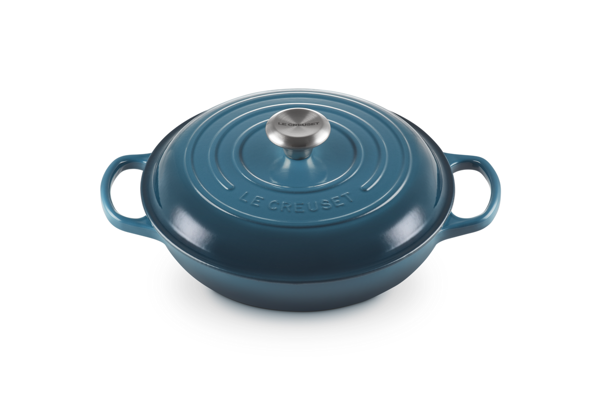 De gietijzeren producten van Le Creuset worden gemaakt in de originele Franse gieterij en zijn uitgegroeid tot een culinaire legende. Deze ondiepe braadpan vormt daarop geen uitzondering. Dankzij de grote, platte bodem en de lage randen is hij ideaal om vlees en groenten te bruinen, stoofgerechten te laten sudderen, te roerbakken en te bakken. Karamelliseren krijgt extra diepte, waardoor elke hap nog smaakvoller wordt.