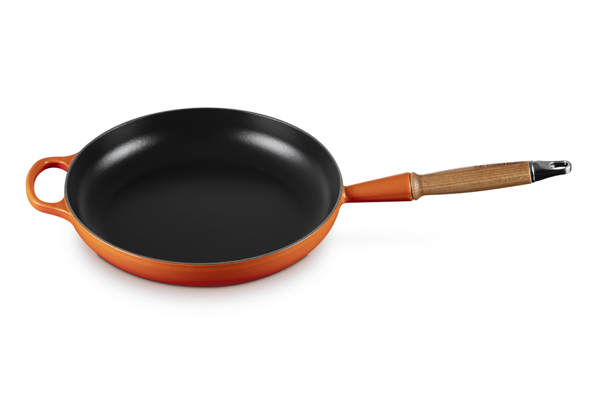 De pan is gemaakt van hoogwaardige materialen en geproduceerd volgens de kwaliteitsstandaarden waar Le Creuset om bekendstaat. Het houten handvat geeft de pan een moderne uitstraling, blijft koel tijdens het koken en zorgt voor extra comfort bij elk gebruik.