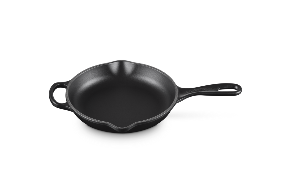 Zowel chef-koks als thuiskoks vertrouwen al jaren op de karakteristieke skillet van Le Creuset. De matzwarte geëmailleerde binnenkant tilt karamelliseren naar een hoger niveau en zorgt voor een intense smaak en perfecte korst. Deze echte keukenheld gebruik je op de kookplaat, onder de grill of in de oven, waardoor hij ideaal is voor braden, bruinen en krokant bakken.